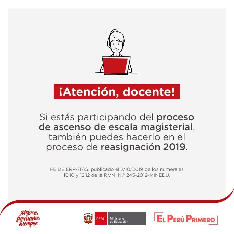 ¡Atención, docente! Recuerda que no están impedidos de participar en la reasignación quienes estén concursando en el proceso de ascenso de escala magisterial.